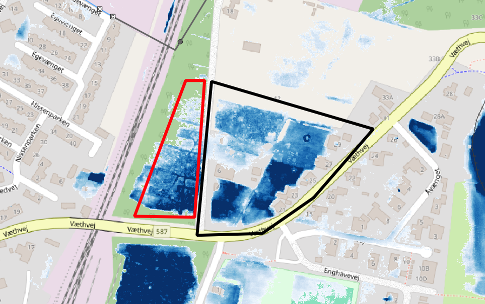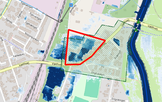 Several houses on the road Vaethvej (numbers 21-29) are vulnerable to flooding. Recently, the inhabitants living there have reported flood problems after a 40 mm rainfall event.
