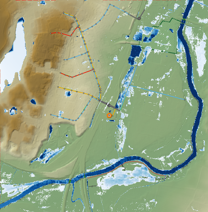 The last step is to include the new retention area in the model, to see if it works as intended. Based on our analysis and the suitability of the terrain, the following location is chosen as retention area: