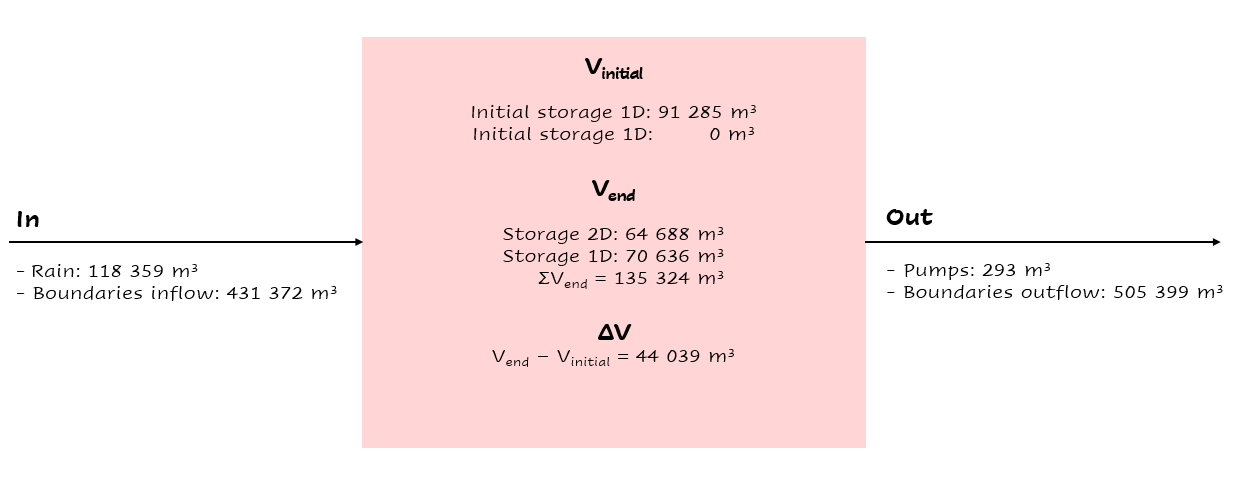 Now fill in the water balance with the numbers you find in the flow summary. Check the water balance yourself; do the numbers add up? Does the difference correspond with the volume error reported in the flow summary?