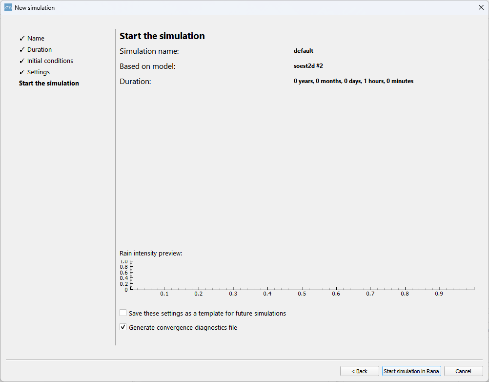 The Rana hydrodynamic computational core is very stable and crashing simulations are very uncommon. Most schematisation errors that result in a failure to generate a valid Rana model, or in crashing simulations, will be caught by the schematisation checker. However, if you do run into an error or crash, there are several things you can do to resolve the issues before contacting the Service desk. The service desk will always ask you to go through these steps before your issue is taken up.