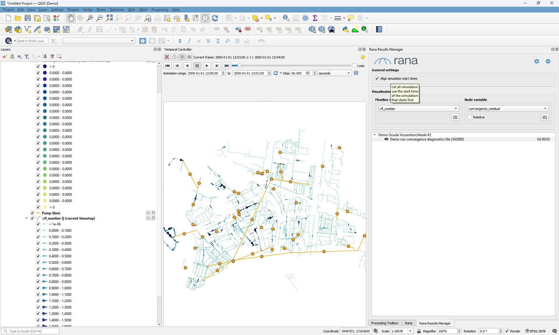 This section will help you solve some problems or errors that may occur when using Rana. Some issues are due to the software, these will be summarised in the section Known Issues, including a temporary solution. Errors related to input data or other user settings are usually covered by the schematisation checker. In rare cases however they might not catch a potential issue.