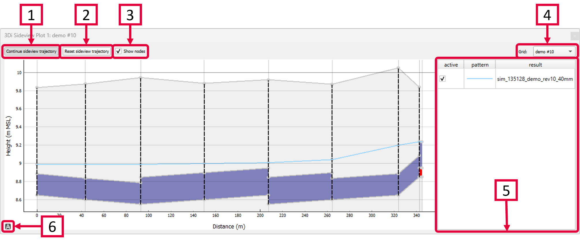If you have loaded multiple simulations results from the same grid (model) they are shown here. They are simultaneously plotted in the sideview.